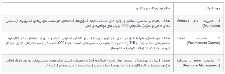 تقسیمبندیهای کلیدی (نمای کلی) در اکوسیستم دامپروری هوشمند